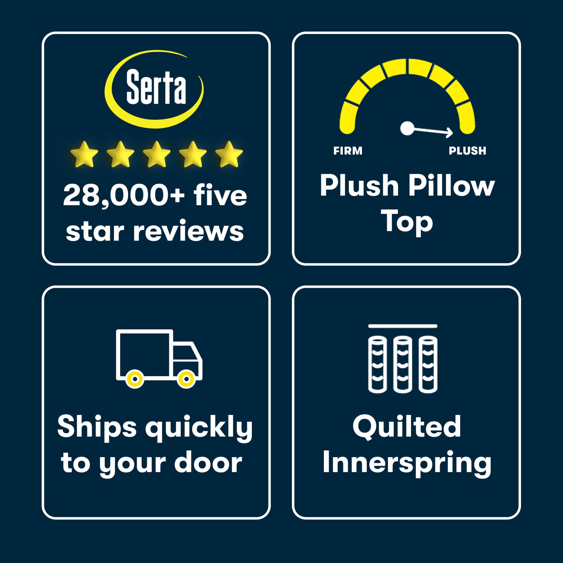 The Serta® Perfect Day Mattress® 12” Plush Pillow Top delivers comfort and convenience. Our mattress in a box fully expands quickly so you can sleep on it right away. This quilted innerspring mattress features our Supportive coil system for durability and all-night support. Pillowsoft® Aire Foam offers airflow and enhanced cushioning for exceptional comfort. Plus, Serta® Pillowsoft® Foam provides gentle contouring support while QuiltLoft™ Memory Foam offers additional comfort at the surface of the mattress. Looking for lower back care? A gel foam band provides our signature zoned comfort supporting the lumbar and hips. Cool Twist® Gel Foam is designed to promote airflow and heat dissipation. Our antimicrobial technology keeps your mattress fresh and clean from odor-causing bacteria. Whether you’re looking for a guest room, a kid’s mattress, or for yourself, the Serta Perfect Day Mattress has what you need, all within your budget.